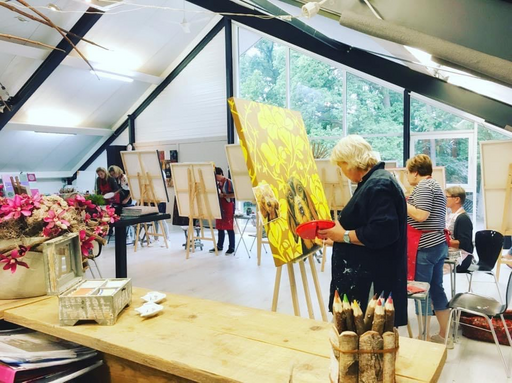 " Het maakt niet uit of je kan tekenen of schilderen. Je leert stap voor stap hoe je een mooi kunstwerk kan maken. In deze drukke tijd is het heel erg fijn om even 2 uurtjes bezig te zijn en je hoofd leeg te maken. Even alles van je af zetten. Schilderen werkt heel erg ontspannend. Er zijn erg mooie resultaten van cursisten, waar ik erg trots op ben "